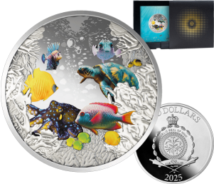 Breathtaking gimpse into the underwater world, captured in a beautifully crafted coin. Colorful fish, a majestic sea turtle, and a vibrant coral reef form a composition that reflects the harmony and beauty of ocean depths. More than just a coin, it's a tribute to the fragility and importance of marine ecosystems.