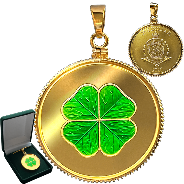 Клевер четырёхлистный ~ Серебряная монета-кулон с позолотой ~ в подарочной коробке