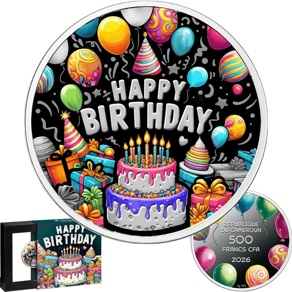 С Днём Рождения! ~ Серебряная монета 2026 в футляре-рамке