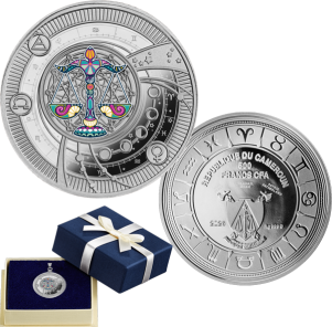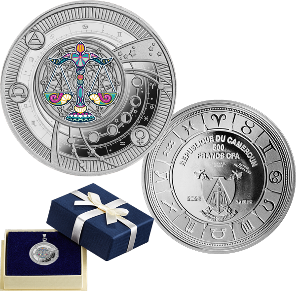 Зодиак ~ Весы ~ Серебряная монета-кулон в футляре