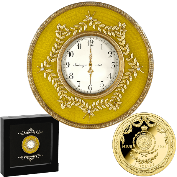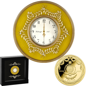 Золотий настільний годинник ~ Мистецтво Фаберже ~ Срібна монета в рамці