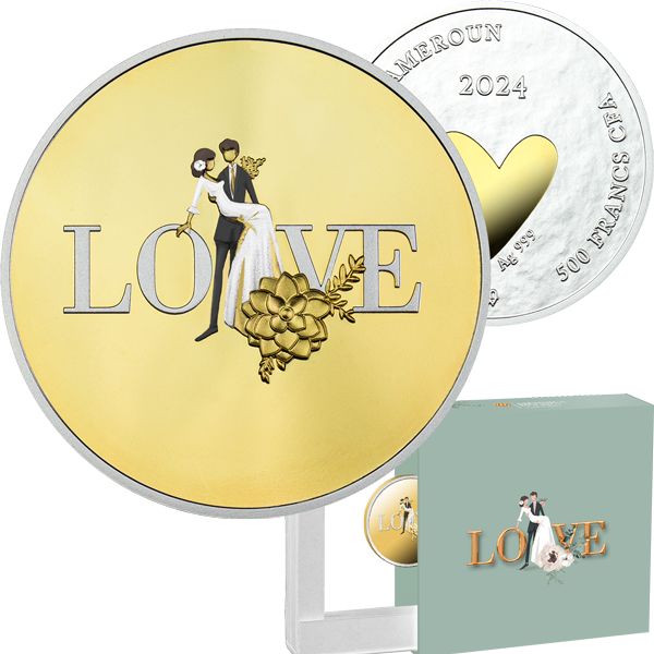 Кохання ~ Весільна срібна монета 2024 з позолотою ~ у футлярі