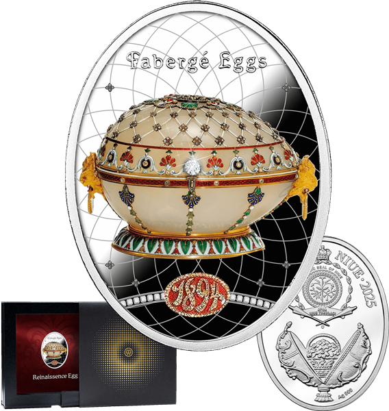 Запитуйте срібну монету "Яйце "Ренессанс" серії "Мистецтво Фаберже" в Україні у відділеннях Радабанку.