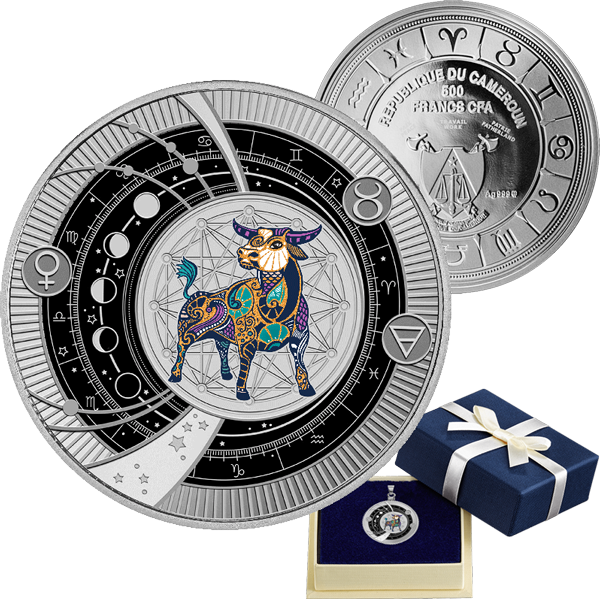 Срібна монета-кулон Тілець – сила астрології, закарбована у сріблі